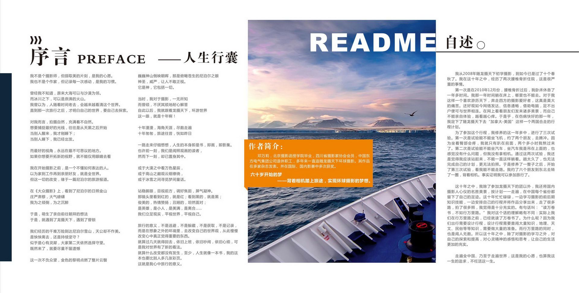 畫冊文字包括前言(序言、結(jié)束語)、章節(jié)說明、每張圖片說明。因為畫冊屬于比較個性化藝術(shù)品,文字表達幫助讀者理解作者的用意有很大幫助。