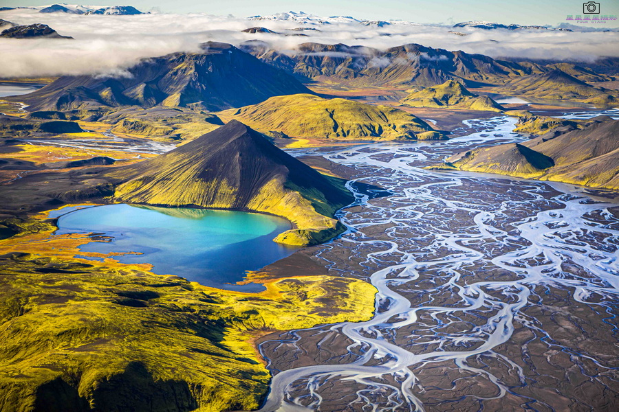 冰島中央內(nèi)陸高地(The Highlands Of Iceland),是歐洲最壯觀、最大的無人區(qū)之一,是冰島核心發(fā)源地,其原始地質(zhì)奇觀是環(huán)線旅行完全無法比擬的,也是無人機航拍的絕佳勝地。這一區(qū)域,地處北美板塊和歐亞板塊交界處的地殼擴張地帶,在漫長的地質(zhì)運動中孕育出一處處原始的地質(zhì)奇觀:絢爛的流紋巖山,陡峭的黑色火山熔巖地,云蒸霞蔚的地?zé)嵩〕?,奇特玄武巖層的瀑布,俊秀的火山熔巖湖。這里風(fēng)景如畫,美麗獨特,處處充滿驚喜,令人沉醉。