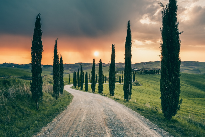 日出前抵達小鎮(zhèn)皮恩扎附近的田野,一處非常具有托斯卡納代表性的風(fēng)景如畫的鄉(xiāng)間,拍攝日出時分田園風(fēng)光。結(jié)束后我們將利用早晨柔和的光影前往鄉(xiāng)間巡游拍攝:絲柏林、修道院、古城、村莊以及柏樹大道等。結(jié)束后前往皮恩扎小鎮(zhèn)午餐及觀光。午餐后返回酒店休息,下午適時前往我們特意為您準(zhǔn)備的拍攝地,蒙蒂奇洛(Montichiello)拍攝日落或放飛無人機。